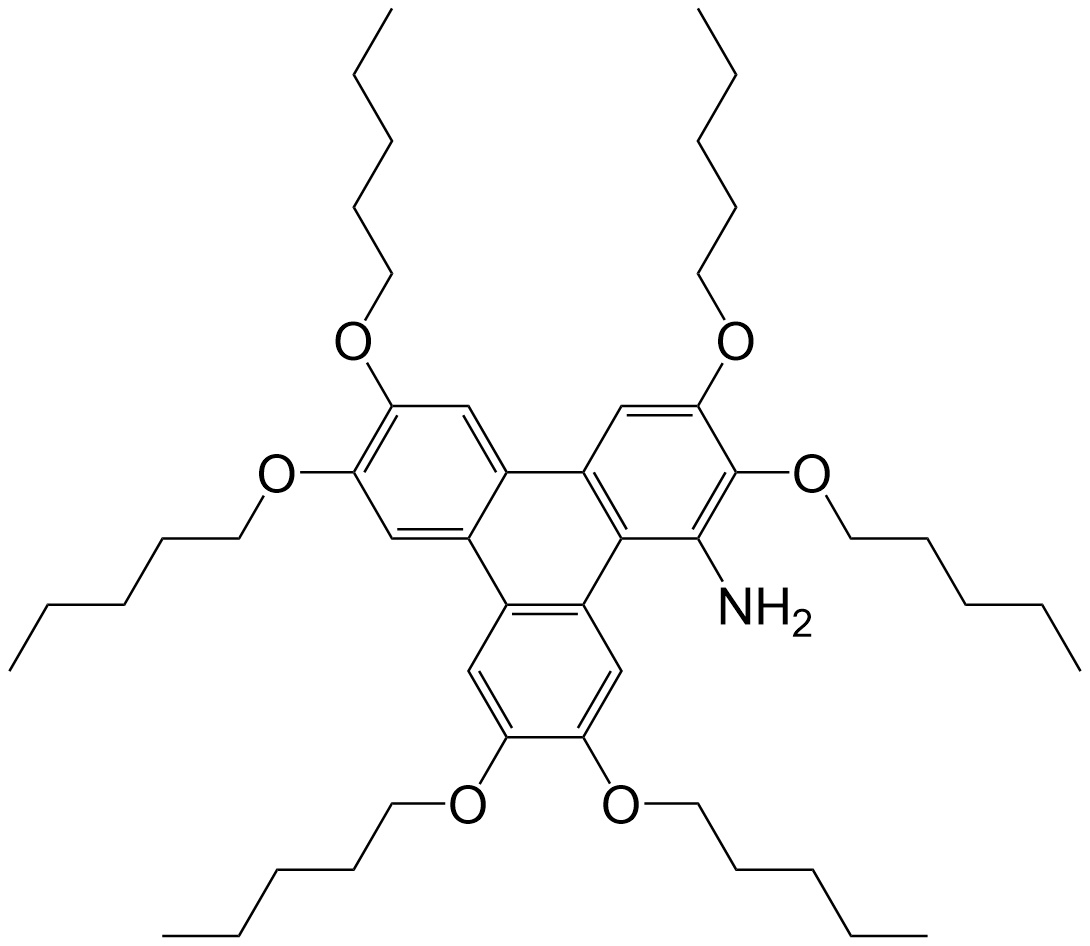 2,3,6,7,10,11-Pentoxy-1-aminetriphenylene (TpNH2) is a molecule consisting of a triphenylene core with five pentoxy groups attached at the 2, 3, 6, 7, and 10 positions, and an amino group at the 1 position. Due to the pressence of the amine group TpNH2 could be used in amine related chemical reactions.
